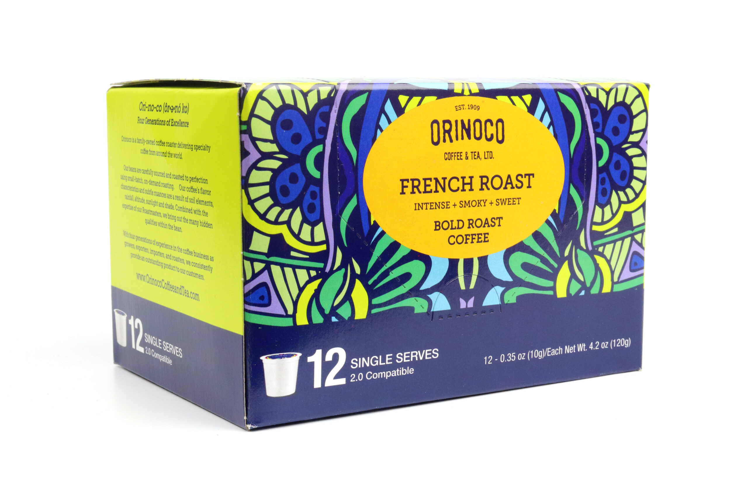 A carefully chosen blend of South American coffees taken to a French roast. Orinoco’s French Roast coffee has a medium body and the roast profile gives it a bittersweet aftertaste.